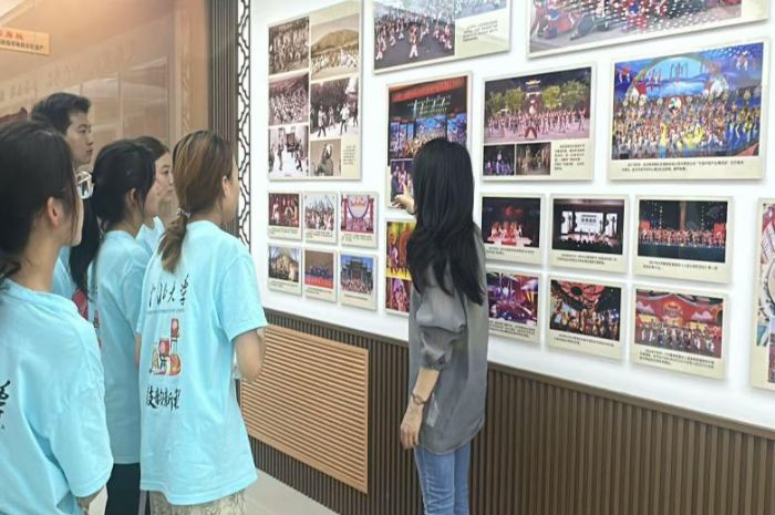 7月14日,實踐隊走進翼城縣人民文化館非遺展廳,在鄒亞莉館長的講解中探尋花鼓底蘊。其中《翼城花鼓賦》的文字引人駐足,隊員們走近品讀,從字里行間感受著花鼓藝術的獨特魅力。展柜中,超百年歷史的楊家莊老花鼓靜靜陳列,見證著藝人們對這項非遺技藝的代代堅守與傳承。鄒亞莉館長則在照片墻前進行了詳細講解,向大家分享著花鼓從民間走向央視、世博會的成長軌跡。活動尾聲,館長贈書留念,為調研增添珍貴資料。