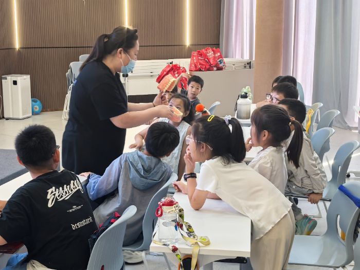 在社區(qū)中心,實踐團成員們協(xié)助老師開展青少年閱讀科普(《弟子規(guī)》解讀)和口腔科譜課程,以及防溺水安全教育等其他綜合課程的開展。