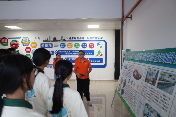 帶著對農產品加工的好奇,實踐團走進廣西倍格農業(yè)科技有限公司開展實地參觀。作為園區(qū)代表性農產品加工企業(yè),該公司以芒果、百香果等本地特色水果為主要原料,開展鮮果分揀、深加工及產品研發(fā),加工產品供應茶飲行業(yè),已構建起基礎產業(yè)鏈條。