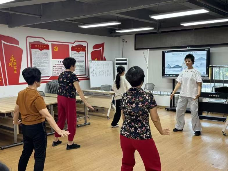 團隊里的八段錦老師首先向老人們介紹了八段錦的好處,它是一種傳統(tǒng)的養(yǎng)生健身方法,能夠調(diào)節(jié)身體機能,增強免疫力。隨后,老師開始一招一式地教老人們練習。老人們跟著老師的動作,認真學習,雖然有些動作不太標準,但大家都很努力。團隊成員在一旁不時地給予指導和糾正,整個活動室上充滿了歡聲笑語。