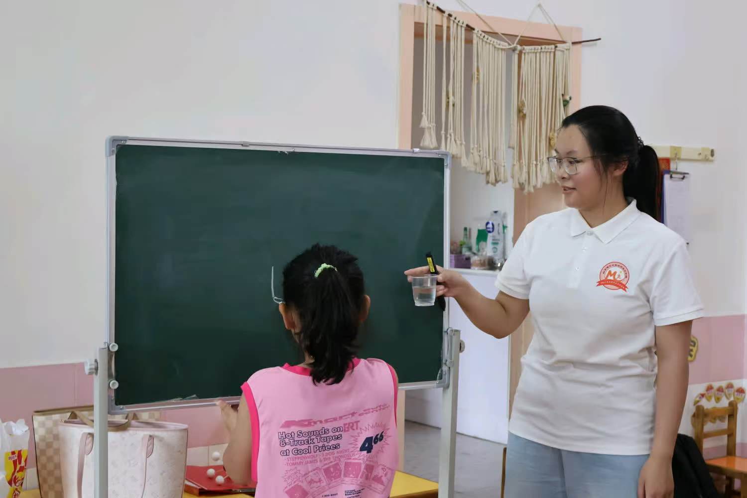 (圖為實踐團成員邀請小朋友上臺展示。李穎能供圖)