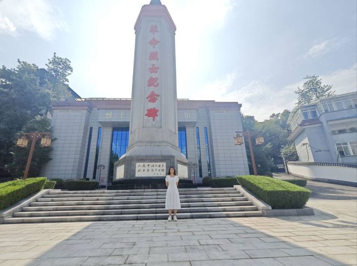 7 月 11 日,團隊成員滿懷著崇敬與莊重,抵達了四川省瀘州市烈士陵園。初入陵園,他們沿著蜿蜒的青石小徑徐徐前行,一種莊嚴(yán)肅穆的氣息瞬間將他們包裹。陵園內(nèi),綠樹郁郁蔥蔥,四周靜謐而平和,仿佛歲月的低語,正默默訴說著那段波瀾壯闊、可歌可泣的革命歷史。在巍峨聳立的烈士紀(jì)念碑前,全體成員久久佇立,目光凝視。