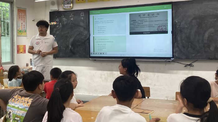 圖為老師用瑤族文化做引入+“籽籽同行”突擊隊攝
