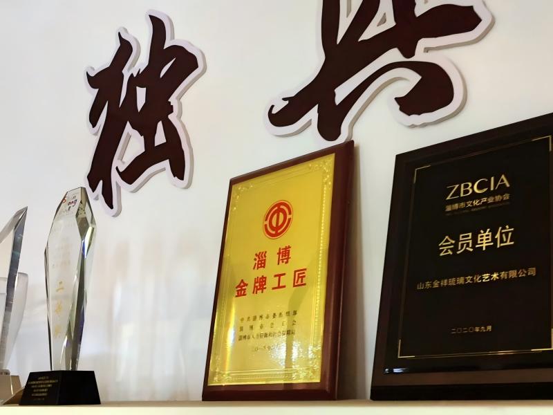 通過工作人員介紹,實踐團成員了解到,博山金祥琉璃文化藝術(shù)有限公司是琉璃藝術(shù)領(lǐng)域的卓越企業(yè),專注于琉璃文化傳承與創(chuàng)新。公司榮獲山東手造·優(yōu)選100等多項榮譽稱號,是省級工業(yè)旅游示范基地、非遺傳習所。擁有實力雄厚的專業(yè)研發(fā)團隊,培養(yǎng)眾多行業(yè)大師。其作品多次斬獲“金鳳凰”金獎、中國玻璃藝術(shù)名家作品展金獎等大獎。同時,積極發(fā)掘保護胭脂紅琉璃燒制技藝,為琉璃藝術(shù)的傳承與發(fā)展作出重要貢獻。