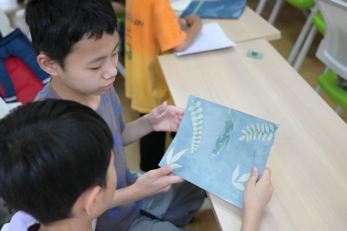 圖為小朋友展示藍(lán)曬作品高一帆供圖