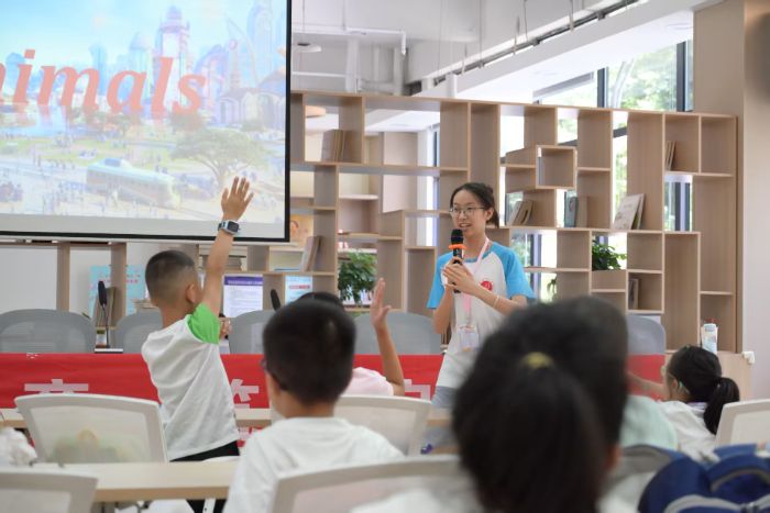 “青春筑夢(mèng)團(tuán)”成員以趣味英語(yǔ)小課堂為載體,為小朋友搭建語(yǔ)言學(xué)習(xí)與文化認(rèn)知平臺(tái)。從英語(yǔ)兒歌的學(xué)習(xí)到日常生活中常見(jiàn)的英語(yǔ)表達(dá),激發(fā)了小朋友對(duì)英語(yǔ)學(xué)習(xí)的興趣。在“動(dòng)物世界”主題學(xué)習(xí)時(shí),志愿者清晰呈現(xiàn)詞匯的漢英對(duì)應(yīng)關(guān)系,幫助他們感知語(yǔ)言差異與聯(lián)系;介紹傳統(tǒng)節(jié)日時(shí),以春節(jié)、端午為例,用漢英雙語(yǔ)講解節(jié)日起源與習(xí)俗趣事,讓孩子們?cè)谡Z(yǔ)言學(xué)習(xí)中深化對(duì)傳統(tǒng)文化的認(rèn)知。從“動(dòng)物世界”到中國(guó)傳統(tǒng)節(jié)日認(rèn)識(shí),小朋友們感受到了漢語(yǔ)與英語(yǔ)的聯(lián)系,了解了中國(guó)傳統(tǒng)節(jié)日的來(lái)源與趣事,增強(qiáng)了對(duì)中華傳統(tǒng)文化的認(rèn)同感。
