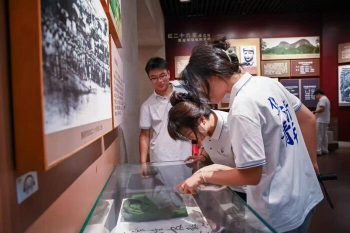 步入中共中央西北局紀(jì)念館,歷史的厚重感撲面而來(lái)。泛黃的電報(bào)手稿、銹跡斑斑的步槍、破舊的公文包,瞬間將實(shí)踐團(tuán)成員拉回那段烽火連天的歲月。“中共陜甘寧邊區(qū)委員會(huì)”展墻中“抗日救亡、匹夫有責(zé)”的八個(gè)遒勁有力的大字吸引著成員們的目光,字里行間講述著西北革命根據(jù)地從創(chuàng)建到壯大的艱辛歷程。它作為延安紅色文化的核心組成,連接著歷史與當(dāng)下的精神紐帶,以鮮活的歷史敘事,激勵(lì)著一代又一代人從革命傳統(tǒng)中汲取力量,賡續(xù)奮斗精神。