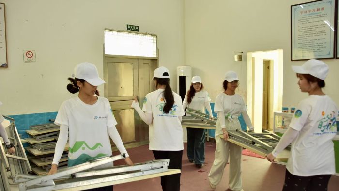 為了讓孩子們有一個干凈、舒適的學(xué)習(xí)環(huán)境,全體隊(duì)員立即投入場地布置工作,一起搬運(yùn)教學(xué)物資、桌椅,對教室進(jìn)行了全面清潔與布置,打造一個良好的教學(xué)環(huán)境。