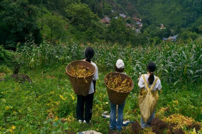 在吉惹進(jìn)去的示范下,隊(duì)員們戴上粗布手套學(xué)習(xí)摘豆莢:捏緊根部輕提,力道不足摘不干凈,稍重又會拔起豆稈。烈日當(dāng)空,汗珠落下,口渴的泥土當(dāng)即吮入。隊(duì)員們真切感受到“粒粒皆辛苦”。休息時,吉惹進(jìn)去的話引人深思:“這里的莊稼都長在陡坡上,成熟了全靠人背下山。”景艷梅對比家鄉(xiāng)的農(nóng)機(jī)化耕作,感慨道:“這正是鄉(xiāng)村振興路上要破解的難題。”
