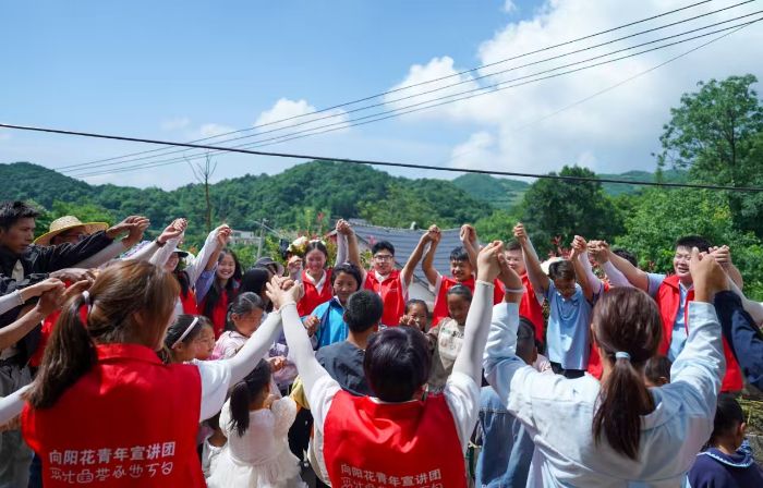 (圖為“石榴籽”實(shí)踐隊(duì)和村民們跳阿西里西 供圖王崧澤)