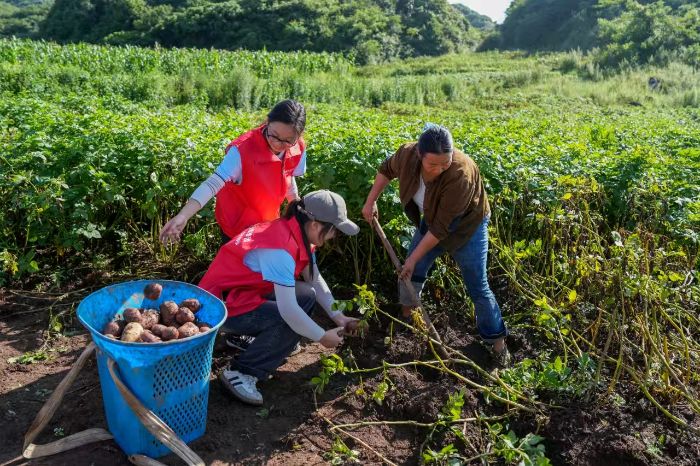 (圖為村民教實(shí)踐隊(duì)員挖土豆 供圖王冬玲)