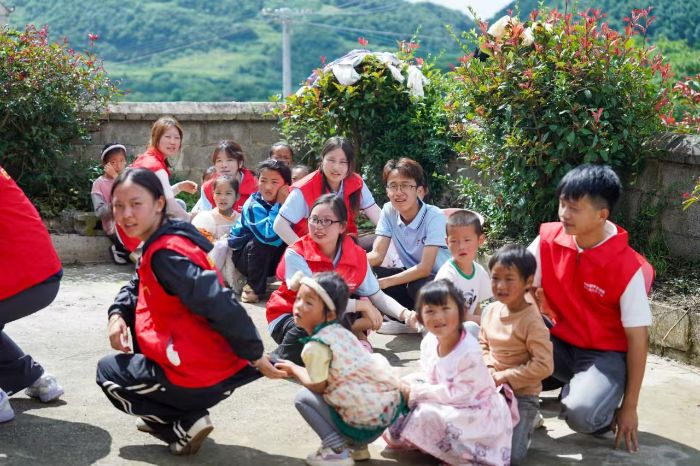 (圖為實(shí)踐隊(duì)員帶小朋友們做游戲 供圖王冬玲)