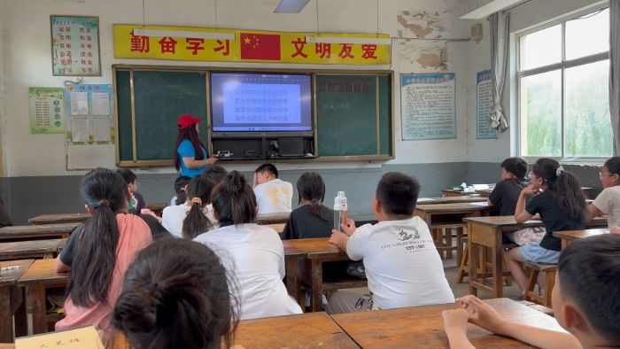 七月的午后,陽光透過窗欞,在課桌上投下斑駁的光影。“健康有young”志愿服務團隊來到了館驛鎮(zhèn)第一中心小學,開啟了他們的支教之旅。學校的教室里,沒有夏日的慵懶,只有筆尖與紙張的輕語、稚嫩的朗讀聲與溫暖的陪伴交織,匯成一曲關(guān)于知識與勇氣的旋律。隊員們的溫暖與真誠,正悄悄在孩子們心中播下成長的種子。
