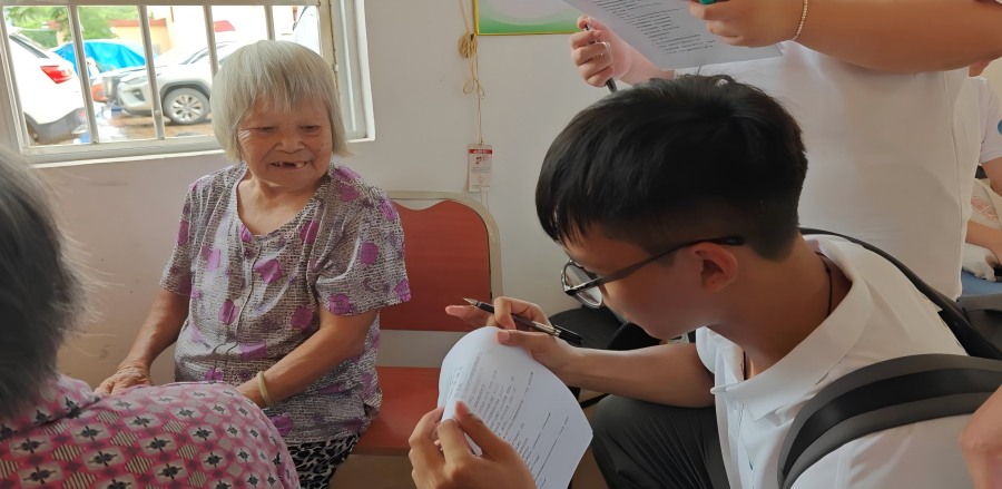 圖為突擊隊成員對村民開展問卷調(diào)研 盧澤喨供圖