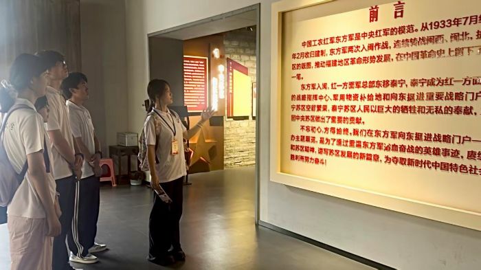 泰寧城區(qū)紅軍街,“紅旗不倒”系列展館無聲訴說著崢嶸歲月,是“精神厚土”的集中展現(xiàn)。隊員們潛心學習后,主動擔當紅色文化傳播者,化身講解員,用青春之聲深情講述泰寧的革命歷史,讓沉淀在這片厚土中的英雄故事煥發(fā)新的時代光芒,實現(xiàn)紅色基因的薪火相傳。