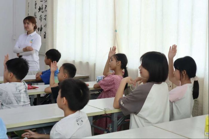 圖為孩子們舉手回答問題(黃梓瀅攝)