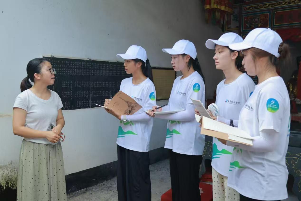 圖為大白村村委工作人員為隊(duì)員們講解譚公仙圣廟的故事(鄧瑞莊攝)