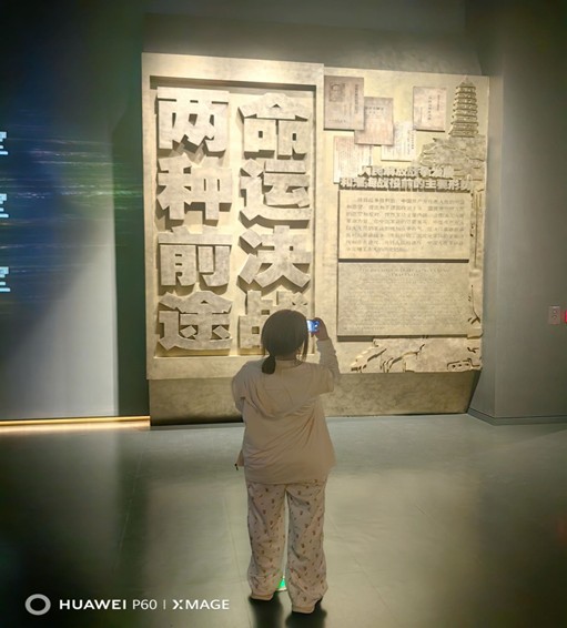 圖為實(shí)踐隊(duì)隊(duì)員劉妍拍攝展覽區(qū)域的浮雕墻。陳思宇攝