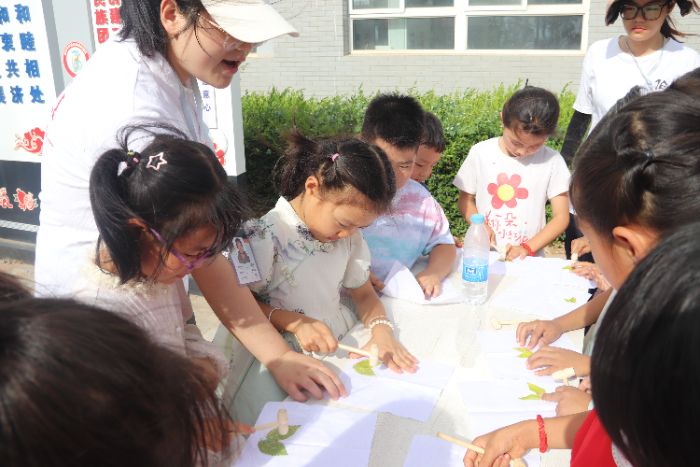 同學(xué)們?cè)诶蠋煄ьI(lǐng)下進(jìn)行拓印活動(dòng)。周浩楠攝