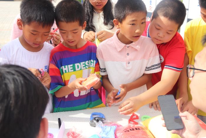 結(jié)束時(shí),四組學(xué)生輪流展示作品:藍(lán)染方巾上的“星空紋”、拓印布上的“自然詩”、彩泥甲骨文“家”字……每一件作品都承載著孩子們對(duì)非遺的獨(dú)特理解。支教團(tuán)成員岳喜霜感慨:“當(dāng)孩子們興奮地解釋自己的創(chuàng)作靈感時(shí),非遺不再是課本上的名詞,而是他們生活的一部分。”