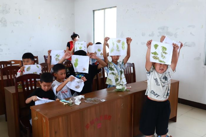 7月14日清晨,南寧師范大學(xué)教育科學(xué)學(xué)院“情暖童心護(hù)成長(zhǎng),愛潤(rùn)?quán)l(xiāng)土助振興”社會(huì)實(shí)踐團(tuán)走進(jìn)廣西河池市羅城仫佬族自治縣龍岸鎮(zhèn)天寶村,以“非遺錘草印花”體驗(yàn)課拉開暑期夏令營(yíng)帷幕。實(shí)踐團(tuán)將課堂搬到村委會(huì)議室,把距今已有千年歷史的商周印染技藝帶進(jìn)大山深處,讓10余名鄉(xiāng)村兒童在“噠噠”錘聲中與傳統(tǒng)文化對(duì)話。