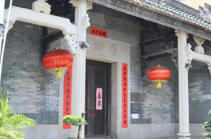 始建于明末清初,歷經(jīng)乾隆、同治年間重修。建筑呈三間三進(jìn)格局,采用磚、木、石結(jié)構(gòu),硬山頂搭配灰塑博古脊等特色元素。其為紀(jì)念北宋抗敵名將康保裔而建,是珠三角地區(qū)康王信仰與風(fēng)俗的重要載體,兼具歷史與文化價(jià)值。自2020年起,康帥府每年9月至10月舉辦魚(yú)燈巡游活動(dòng),主會(huì)場(chǎng)設(shè)在門(mén)庭前。巡游隊(duì)伍包括彩旗隊(duì)、鼓樂(lè)隊(duì)等,其中6米長(zhǎng)的大型魚(yú)燈由8名壯漢抬舉,并由大良魚(yú)燈傳承人潘智江現(xiàn)場(chǎng)指導(dǎo)。