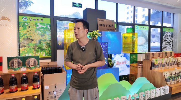 圖為兩山集團(tuán)銷售經(jīng)理講述黃精產(chǎn)品市場營銷。張笑嫣供圖
