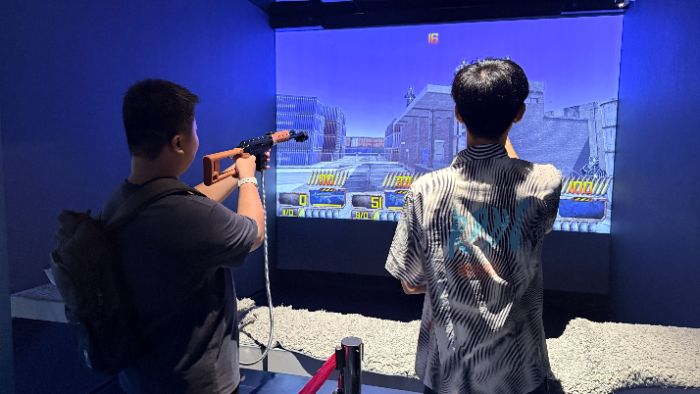 參觀中,互動體驗區(qū)成為隊員們釋放熱情的天地。復(fù)古警用摩托旁,隊員們接力“騎巡”,在“欲寄平安無好句,不如來此共騎巡”的標(biāo)語下,模擬守護(hù)街巷的場景,笑聲中藏著對公安巡邏工作的共情;射擊模擬設(shè)備前,大家組隊“作戰(zhàn)”,緊盯屏幕靶標(biāo),感受警務(wù)訓(xùn)練的緊張節(jié)奏,切身體會警察實戰(zhàn)技能養(yǎng)成的不易。這些互動,讓警史學(xué)習(xí)跳出書本,變得鮮活有趣。