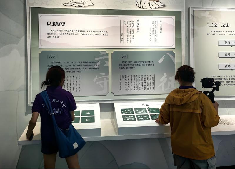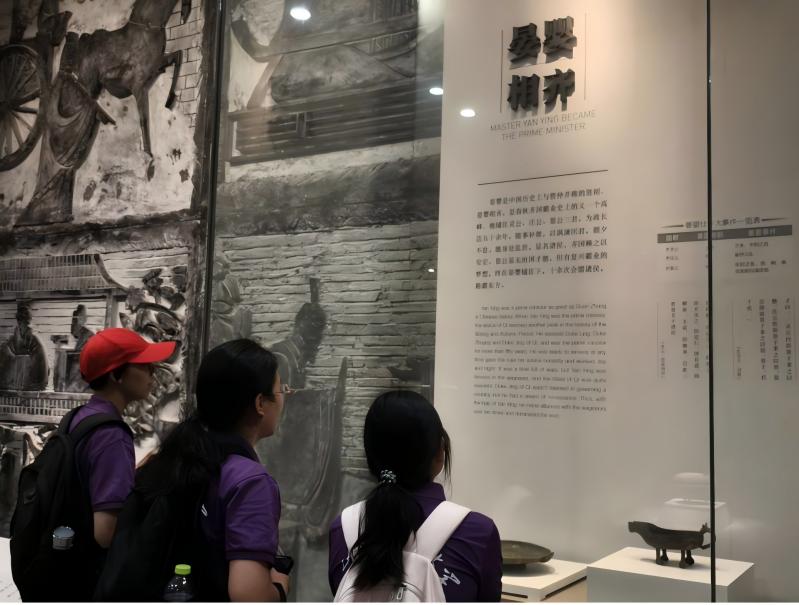 參觀過程中,實踐團成員自主深入各展區(qū)研學。在“稷下學宮”專題展區(qū),成員們仔細研讀典籍復刻本,探討百家爭鳴對齊國文化繁榮的推動作用;于齊地考古成果展區(qū),圍繞河崖頭東周墓殉馬坑、大武漢齊王墓出土文物,分析齊文化的歷史地位與時代價值。成員們通過查閱展陳說明、拍照記錄、交流討論,系統(tǒng)學習齊文化核心內(nèi)涵。