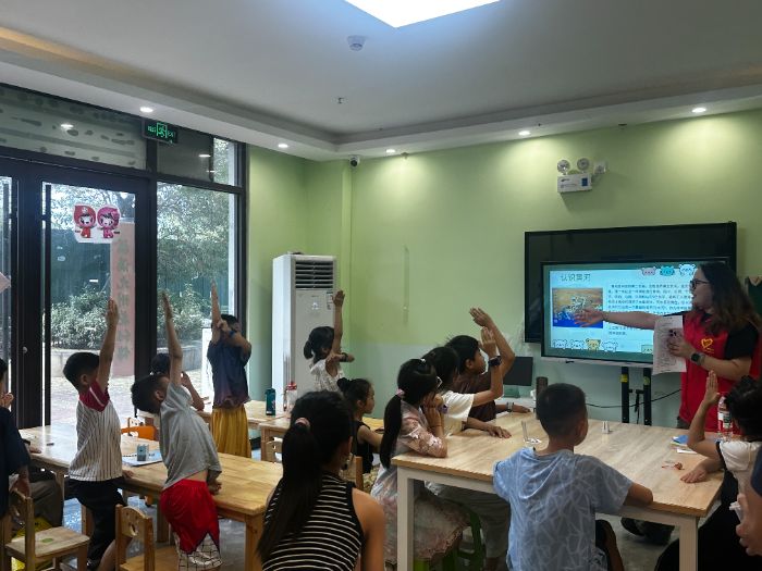 圖為小朋友們積極回答隊(duì)員的問題 供圖:楊雯桐