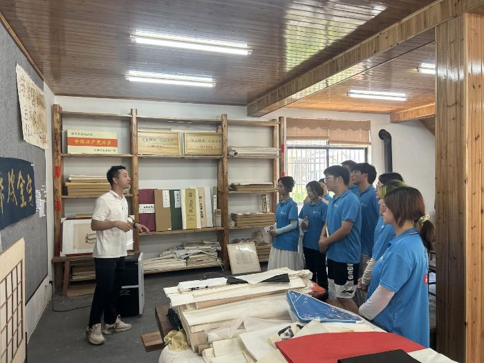 隨著對(duì)負(fù)責(zé)人進(jìn)行深入的采訪,實(shí)踐團(tuán)隊(duì)了解到紙廠也在嘗試數(shù)字化轉(zhuǎn)型,借助電商平臺(tái)拓展銷售渠道,突破地域限制。實(shí)踐團(tuán)隊(duì)針對(duì)皮紙產(chǎn)業(yè)發(fā)展的人才引入、資金支持、政策扶持等問(wèn)題進(jìn)行訪談,了解到目前存在專業(yè)電商運(yùn)營(yíng)人才匱乏、數(shù)字化改造資金有限等困境,但當(dāng)?shù)卣苍诔雠_(tái)相關(guān)舉措,鼓勵(lì)傳統(tǒng)工藝擁抱數(shù)字經(jīng)濟(jì)。在與負(fù)責(zé)人的交流采訪中,他也向?qū)嵺`團(tuán)隊(duì)介紹了當(dāng)時(shí)返鄉(xiāng)創(chuàng)業(yè)的動(dòng)機(jī)與意圖,他希望通過(guò)他所學(xué)的知識(shí)讓更多人了解宣城當(dāng)?shù)氐钠ぜ垼哺恿私庵袊?guó)傳統(tǒng)的非遺文化技術(shù)。