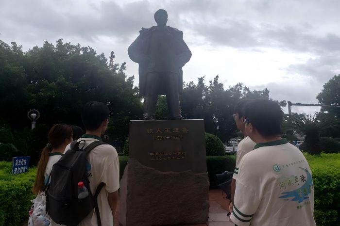 實(shí)踐精神鑄初心,鐵人風(fēng)范勵前行 依托進(jìn)喜園的紅色資源,實(shí)踐團(tuán)開展“鐵人精神”學(xué)習(xí)活動。在王進(jìn)喜事跡碑前,團(tuán)隊(duì)成員通過觀看圖文資料、聆聽講解,深入了解鐵人王進(jìn)喜“為國分憂、為民族爭氣”的奮斗故事——從“跳進(jìn)泥漿池用身體攪拌泥漿”的拼搏場景,到“寧肯少活二十年,拼命也要拿下大油田”的壯志豪情,深刻感悟其不畏艱難、實(shí)干擔(dān)當(dāng)?shù)木駜?nèi)涵。“鐵人能為國家石油事業(yè)拼命,我們也要為家鄉(xiāng)綠水青山出力。”實(shí)踐團(tuán)成員葛從浩堅(jiān)定地說。大家表示,將把鐵人精神轉(zhuǎn)化為踐行綠色發(fā)展的動力,在環(huán)保實(shí)踐中保持實(shí)干勁頭,在服務(wù)基層中彰顯青春擔(dān)當(dāng)。