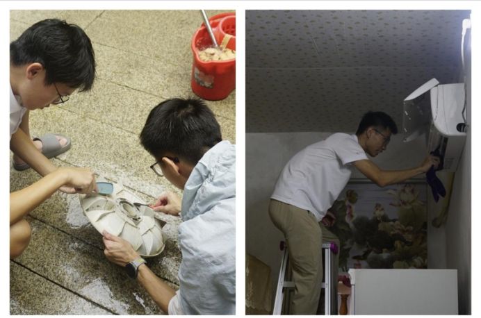 隊員們上門幫老人免費清洗空調(diào)、洗衣機(jī)