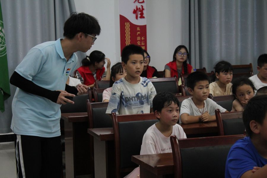 圖為小朋友們認(rèn)真聆聽實踐團(tuán)成員授課。彭藝攝