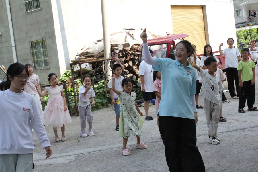 圖為實踐團(tuán)成員教學(xué)舞蹈。彭藝攝