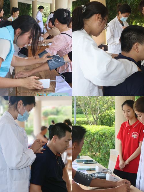 7月14日上午8點(diǎn),太陽(yáng)初升,傳音筑夢(mèng)服務(wù)隊(duì)的隊(duì)員們?cè)缭绲乇阍诰G樹成蔭的勝前公園迅速搭建起“基礎(chǔ)醫(yī)療服務(wù)站點(diǎn)”。隊(duì)員們憑借專業(yè)所學(xué)以及下鄉(xiāng)前的基礎(chǔ)醫(yī)療服務(wù)培訓(xùn),為勝前村居民提供量血壓、貼耳穴、推拿按摩等服務(wù)。量血壓的隊(duì)員們仔細(xì)記錄數(shù)據(jù),認(rèn)真地給予每一位居民健康建議;貼耳穴的隊(duì)員們輕聲講解穴位功效,細(xì)致地給前來(lái)體驗(yàn)的居民貼好耳穴貼;推拿隊(duì)員們手法嫻熟,用雙手幫助居民們緩解酸痛。在服務(wù)過(guò)程中,隊(duì)員同步宣傳國(guó)家教育資助政策,讓健康關(guān)懷與政策溫暖并行。