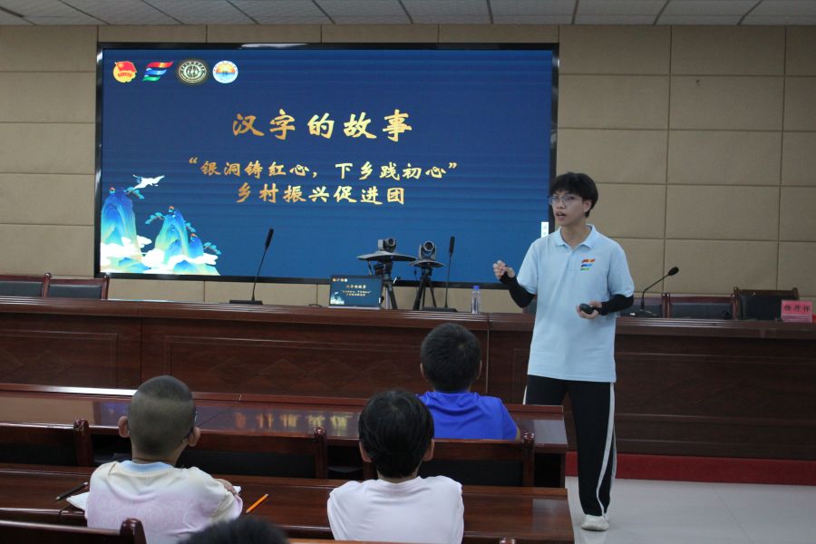 暖心鄉(xiāng)村,支教同行。清晨的廣場上,舞蹈課率先喚醒了沉睡的社區(qū)。孩子們跟著實踐團(tuán)舞蹈小老師的節(jié)奏伸展、跳躍,汗水浸濕了衣衫,眼里的興奮卻像晨露般晶瑩,藝術(shù)的活力在舞步中悄悄綻放。緊接著,實踐團(tuán)文學(xué)小老師帶來的“漢字的故事”課堂里,“日”“月”等象形字的演變通過圖片與故事變得鮮活可觸,猜甲骨文游戲里,孩子們爭相舉手、踴躍發(fā)言,對漢字的熱愛在一來一往中愈發(fā)濃厚。