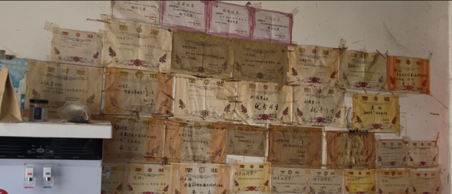 圖為支教前走訪小朋友家墻上的獎狀。謝佳芯攝
