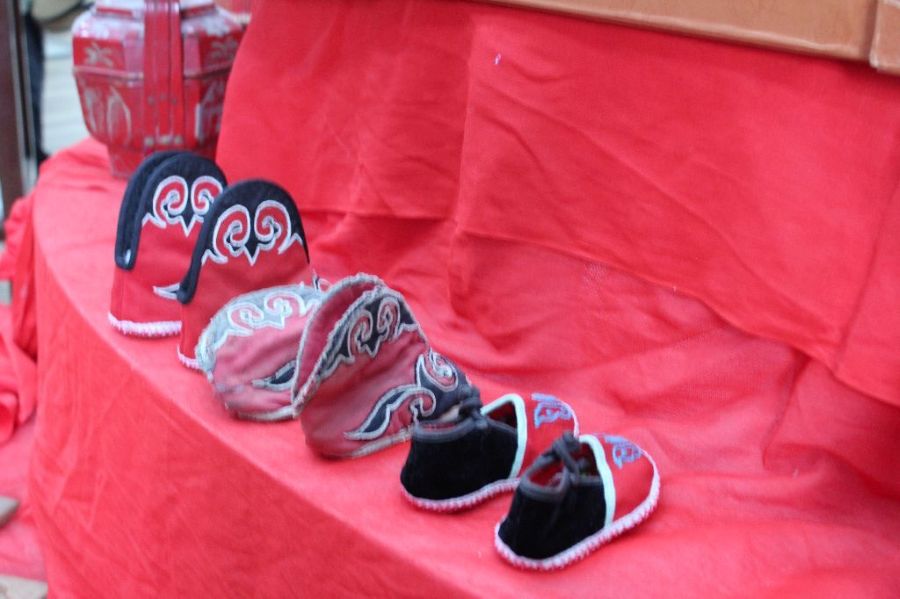 這些源于生活的創(chuàng)作,逐漸沉淀為獨具地域特色的民俗符號。以紅布為底,取“喜慶辟邪”之意;用彩線作墨,藏“錦繡前程”之愿。在“父母之命、媒妁之言”的時代背景下,每一針線都承載著女性對婚姻最質(zhì)樸的憧憬。更珍貴的是,嫁花的傳承遠不止于技藝本身。母親教女兒辨線色、練針法時,實則在傳遞生活哲學(xué)——繡“并蒂蓮”時強調(diào)“花要并蒂,人要同心”,論“鴛鴦戲水”時叮囑“相守不離,綿長順遂”。看似是手把手傳授刺繡,實則是代代相傳的持家之道與處世智慧。