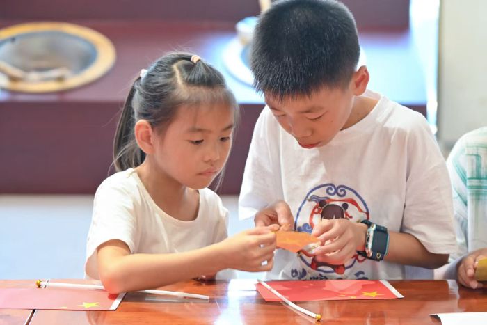 同學們自己動手制作五星紅旗
