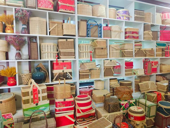 在協(xié)會展示廳,琳瑯滿目的竹編產品令隊員們驚嘆不已。協(xié)會會長向團隊介紹了一款暢銷的竹編禮盒:“這款產品將傳統(tǒng)技藝與現(xiàn)代設計結合,在制作過程中,采用傳統(tǒng)挑一壓一、絞絲編等編織技法,完整保留竹材天然紋理與質樸質感,同時在色彩搭配與造型設計上大膽創(chuàng)新,運用當下流行的低飽和度色系與簡約幾何造型又加入了時尚色彩,深受市場歡迎。據(jù)悉,協(xié)會已開發(fā)竹制包裝盒、果籃等120余種產品,帶動周邊100余戶村民就業(yè),實現(xiàn)了“非遺傳承+產業(yè)富民”的雙贏。隊員們與協(xié)會負責人深入交流,結合專業(yè)所學,為產品設計、電商推廣等提出了創(chuàng)新建議。