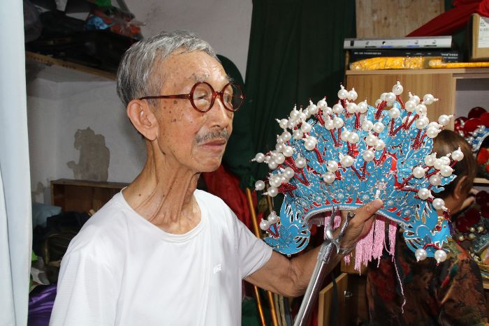 圖為漢調(diào)二簧代表性傳承人講解傳統(tǒng)戲曲服飾。謝靜儀攝