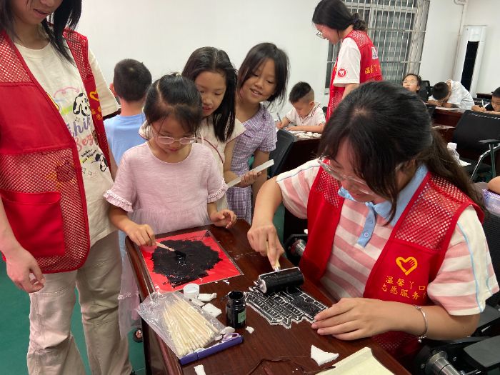 在丫口社區(qū)與金斗山社區(qū)托管班,非遺美育傳承組為孩子們開啟了觸摸鄉(xiāng)土記憶的技藝之門。