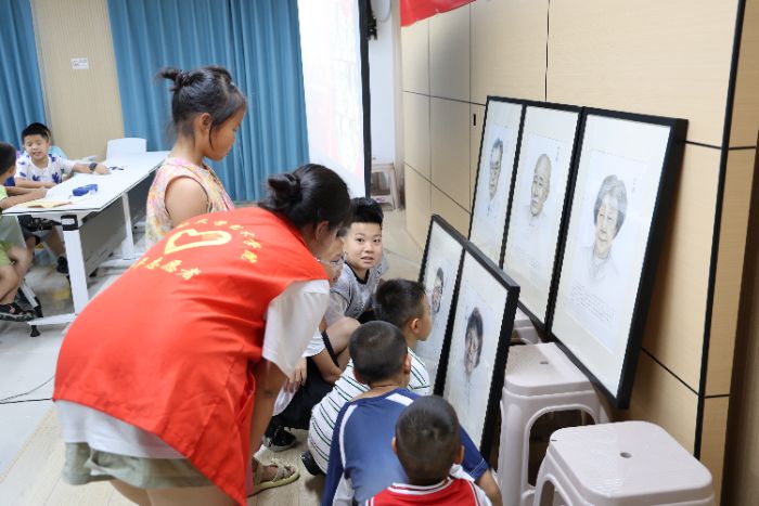 “畫說教育家精神”進(jìn)課堂活動,為非遺美育注入思想內(nèi)涵。實(shí)踐隊(duì)員發(fā)揮美術(shù)專業(yè)優(yōu)勢,出征前繪制蔡元培、陶行知、張桂梅等中外著名教育家經(jīng)典肖像并帶進(jìn)丫口和金斗山社區(qū)課堂。課堂上,志愿者圍繞畫像,講述教育家奉獻(xiàn)精神、教育情懷、實(shí)踐理念和創(chuàng)新勇氣。像“陶行知爺爺說‘生活即教育’,張桂梅老師點(diǎn)亮大山女孩夢想”這樣的生動講述,讓畫像中教育家目光變得溫暖且充滿力量。孩子們仰臉專注凝視畫像,仿佛與偉大靈魂跨時空對話。