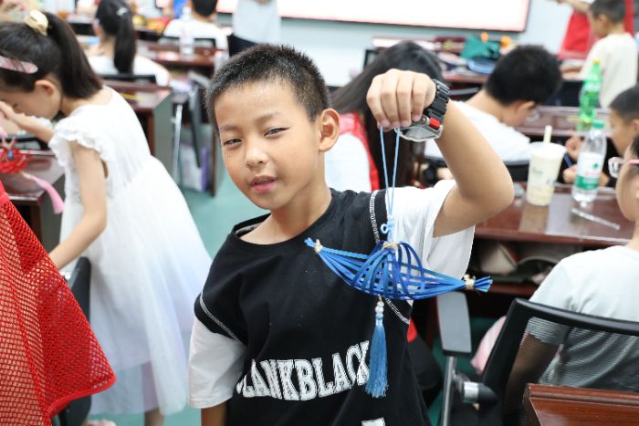 竹編課堂上,細(xì)韌的竹篾在指尖翻飛起舞。隊(duì)員們傳授著“壓一挑一”的編織口訣,孩子們?nèi)褙炞ⅲ?jīng)緯交錯間,一艘艘承載著峽江兒女智慧與鄉(xiāng)愁的“小竹船”逐漸成型。觸摸著親手編織的小船,孩子們仿佛觸摸到宜昌“靠山吃山,靠水吃水”的古老生存智慧。
