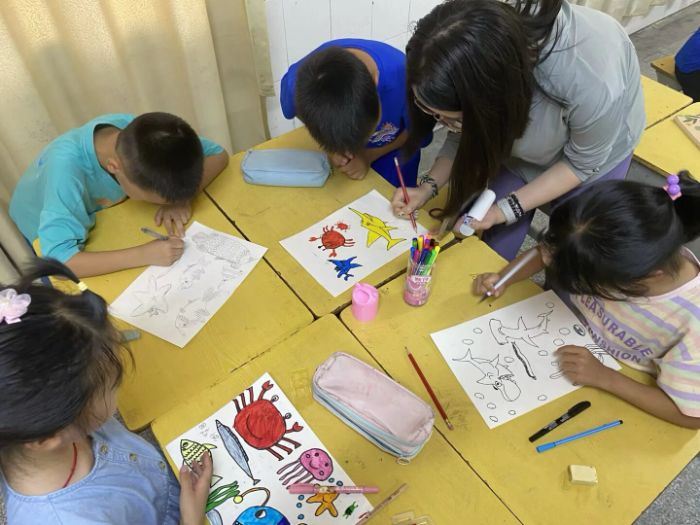 科技啟蒙不止于組裝,隊(duì)員引導(dǎo)孩子圍繞“長江大保護(hù)”創(chuàng)意繪畫,孩子們用畫筆描繪心中母親河未來圖景,如江豚嬉戲、生態(tài)廊道、新能源船舶等。科技模型啟迪智慧,綠色繪畫涵養(yǎng)情懷,在孩子心中種下守護(hù)長江、建設(shè)美麗中國的種子。