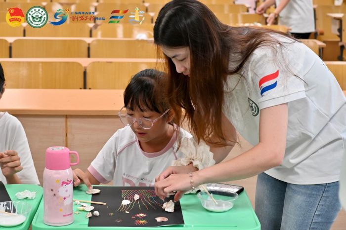 7 月 10 日,南澳縣后宅鎮(zhèn)中心小學(xué)五年級(jí)的教室里,廣州新華學(xué)院 “藝路向汕” 三下鄉(xiāng)實(shí)踐隊(duì)的隊(duì)員們正積極準(zhǔn)備著貝殼裝飾畫(huà)的材料。這場(chǎng)以貝殼裝飾畫(huà)為主題的美育課,充滿(mǎn)著濃濃的海島文化,借助南澳島豐富的貝殼資源,讓孩子們?cè)谟H近自然的過(guò)程中學(xué)習(xí)審美與創(chuàng)作。
