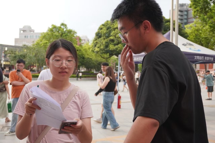 圖為實(shí)踐團(tuán)成員黃貝淳采訪游客,由黨輝鄉(xiāng)夢實(shí)踐團(tuán)成員黃德華供圖