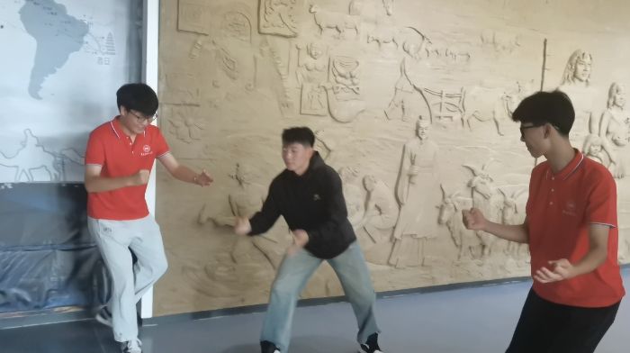 訪談之余,陳義老師親自示范,悉心指導(dǎo)實(shí)踐團(tuán)成員學(xué)習(xí)舞獅技巧。從獅頭的起勢(shì)、擺幅到與獅身的配合韻律,每一個(gè)動(dòng)作細(xì)節(jié)的點(diǎn)撥,都讓我們?cè)趯?shí)踐中更深刻地體會(huì)到舞獅藝術(shù)的精妙與厚重。這不僅是技藝的傳遞,更是一份文化責(zé)任的接續(xù),讓實(shí)踐團(tuán)成員對(duì)傳統(tǒng)文化的生命力有了更為真切的感知。