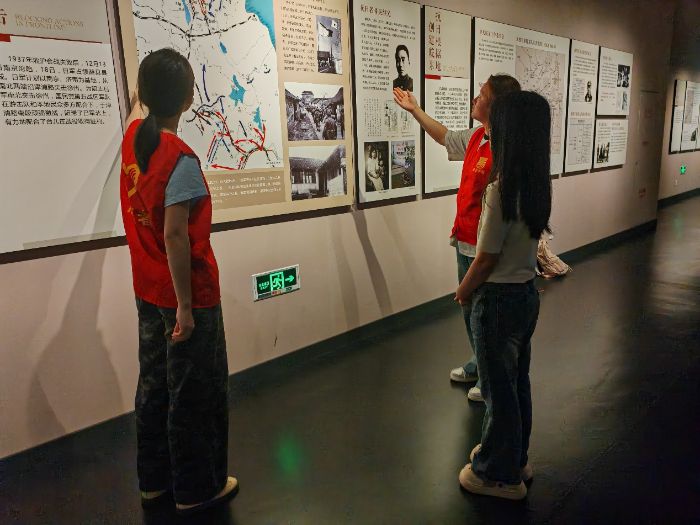在參觀過程中,隊員們還主動承擔起了義務講解員的角色。他們身穿統(tǒng)一的志愿者服裝,用飽含深情的話語,為前來參觀的市民講述著展品背后的故事。當一位隊員指著一張描繪戰(zhàn)斗場景的圖片,詳細講述滁州地區(qū)的革命先烈們如何不畏強敵、浴血奮戰(zhàn)時,周圍的聽眾們都被深深吸引,紛紛圍攏過來,認真聆聽。